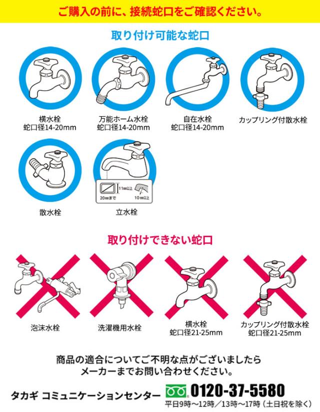 横水栓(蛇口径14-18mm)、万能ホーム水栓、自在水栓(蛇口径14-18mm)、地下散水栓、カップリング水栓。