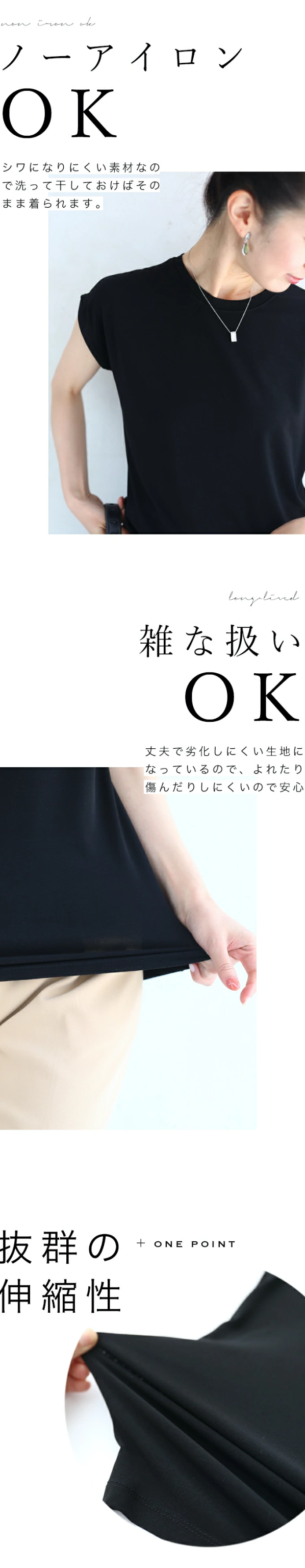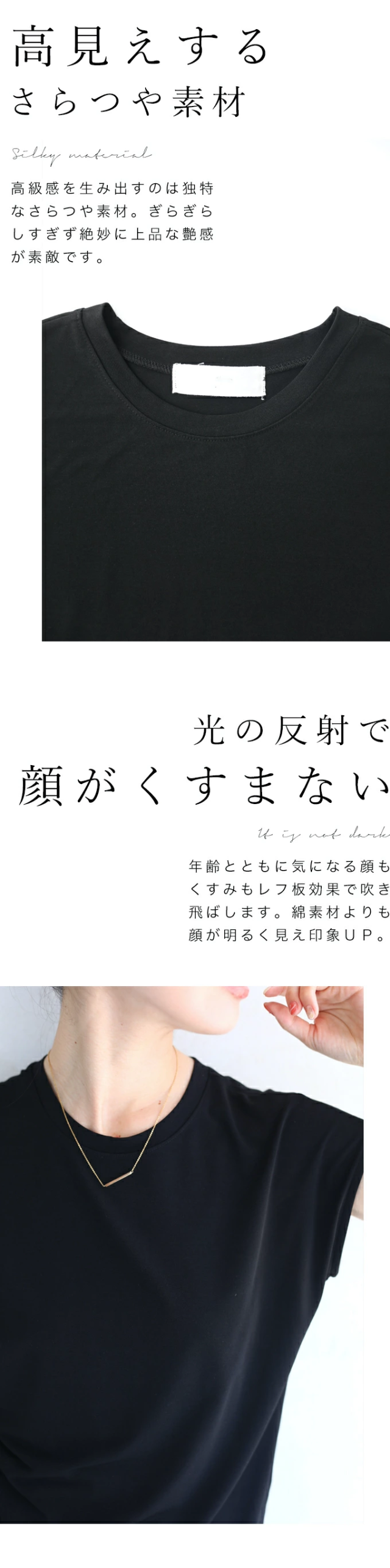 再入荷2月7日 ちょい袖 艶感カットソー S-M ブラック wk00053bk CAWAII Tシャツ 春夏 半袖 フレンチスリーブ ドロップショルダー ドルマン ストレッチ シワになりにくい 洗える 体型カバー 速乾 薄手 無地 春 クルーネック きれいめ ゆったり 夏 春服 夏服 無地