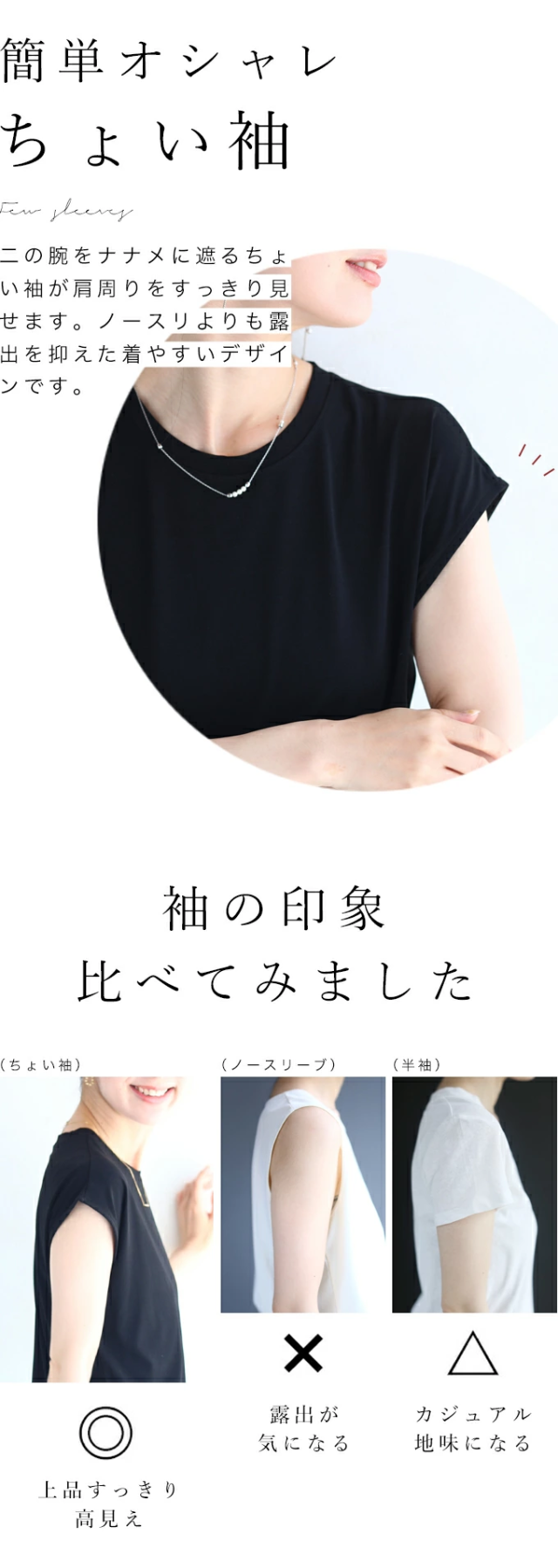 少しだけ肩にかかるくらいのちょい袖がポイント。