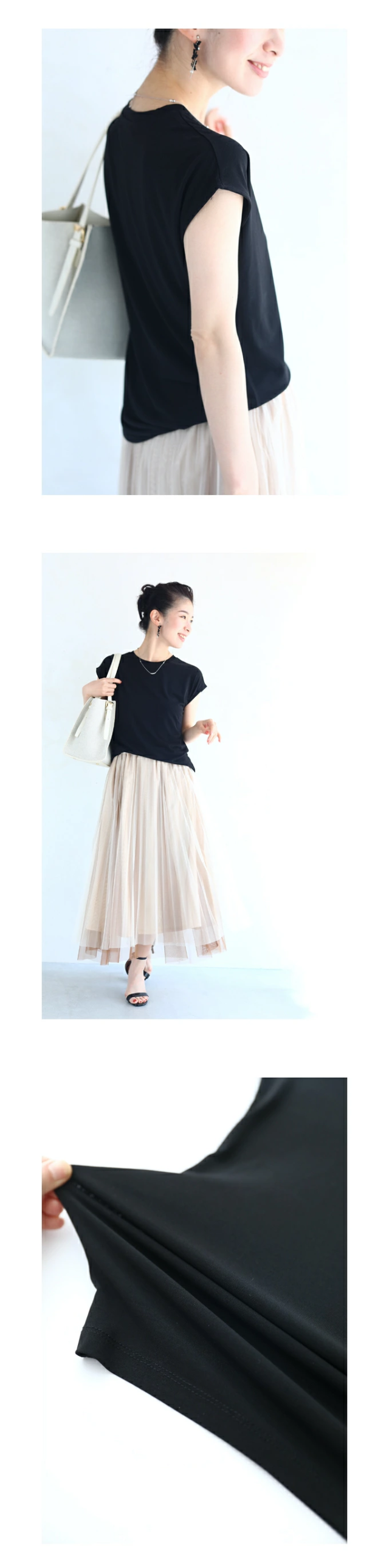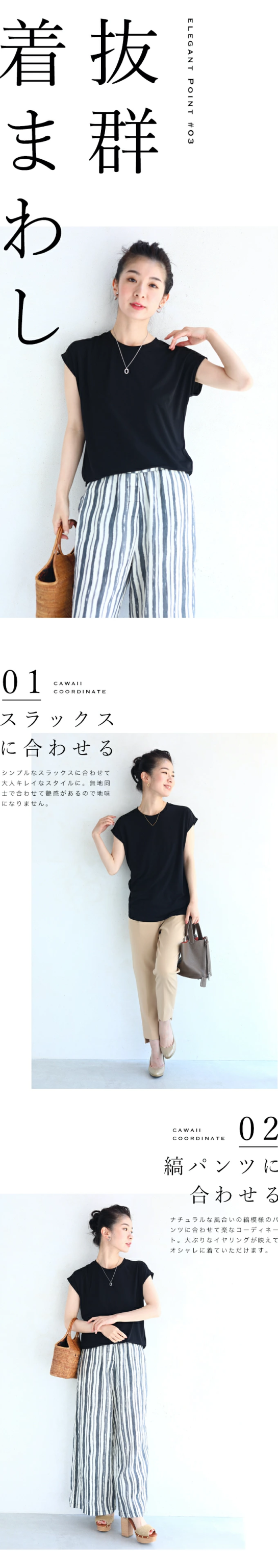 新作 新着 再入荷 CAWAII FRENCHPAVE フレンチパヴェ エレガント ベーシック カジュアル 可愛い かわいい カワイイ おしゃれ オシャレ お洒落 個性 個性的 定番 ベーシック 大人かわいい 大人可愛い 上品 女性らしい デザイン スタンダード ナチュラル きれいめ キレイめ シンプル フェミニン ちょい袖 カットソー トップス 丸首 クルーネック S M 小さめ 小さめサイズ小さい 小さいサイズ 低身長 痩せ ほっそり 小柄 細身 薄手 涼しい ずずしい 春 夏 秋 春服 春物 夏 夏服 夏物 ブラック 黒 黒色 無地 ワンカラー ワントーン 日常着 普段着 日常使い ヘビロテ 毎日着れる オフィス オフィスカジュアル 会社 通勤