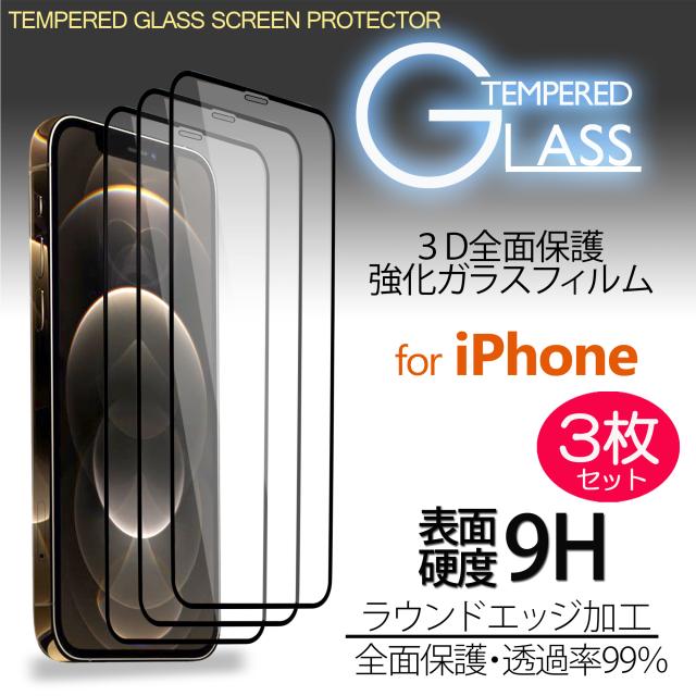 iPhone ガラスフィルム 枠付き 3枚セット 強化ガラスフィルム 3D iPhone12 Pro Max iPhone12mini iPhone11 iPhoneXS iPhoneXR iPhoneXSMax 全面保護 3枚入り ラウンドエッジ加工 9H 透過率99% 透明 指紋防止 飛散防止 気泡防止 保護 アップル アイフォン 液晶保護フィルム