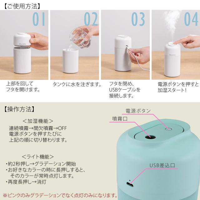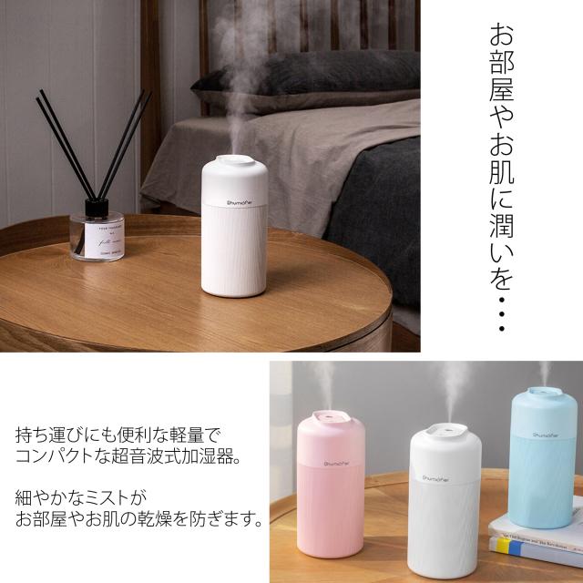 超音波加湿器 加湿器 卓上 コンパクト USB 給電式 350ml ミニ加湿器 ピンク ホワイト ブルー 小型 自動OFF ライトアップ シンプル 乾燥肌対策 【送料無料】 【宅配便のみ】