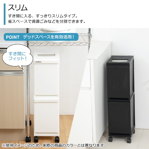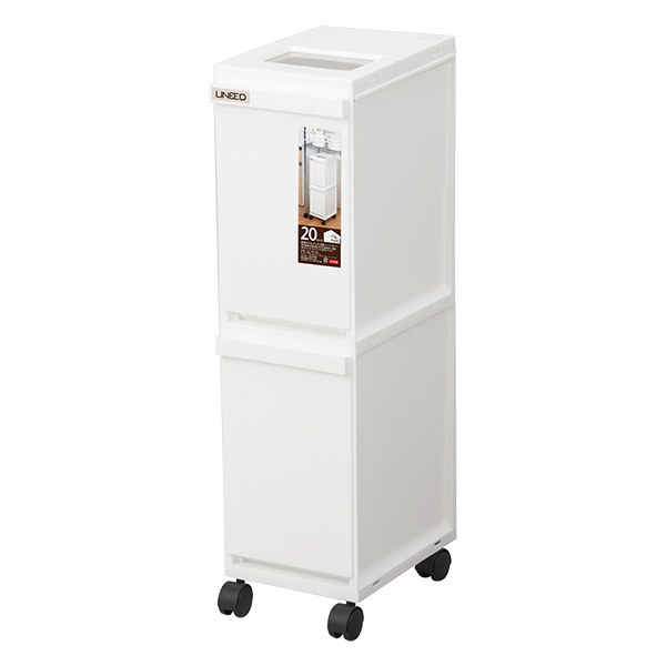 ゴミ箱 ユニード 多段スリムペール2段 20L(10L×2) ホワイト | 分別 ダストボックス ごみ箱 縦型 キャスター付 2分別 隙間収納 プッシュ キッチン ペール おしゃれ 資源ごみ すき間