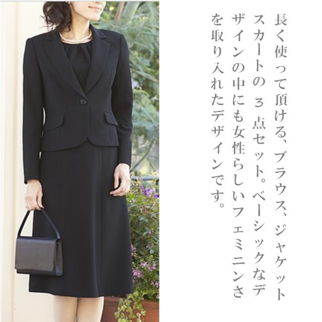 喪服 ブラックフォーマル 礼服 スカートスーツ【テーラーカラー】フォーマル3点スーツ 1109