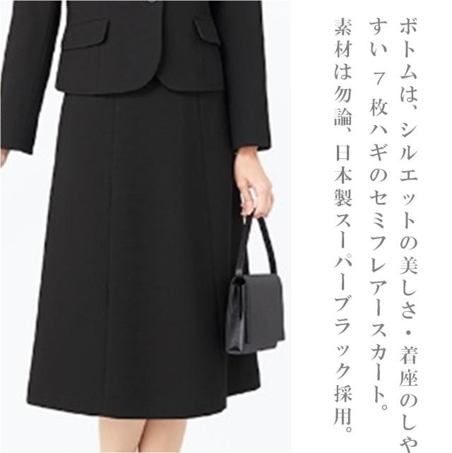 ボトムは、シルエットの美しさ・着座のしやすい7枚ハギのセミフレアースカート。