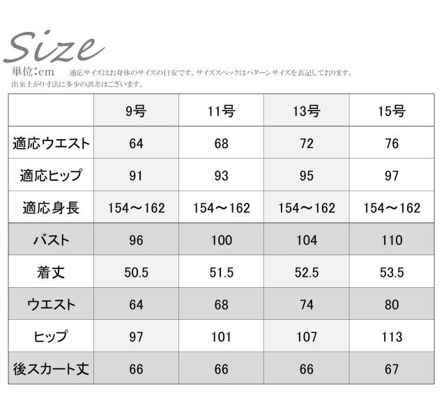 <9号>バスト96、着丈50.5、ウエスト64、ヒップ97、スカート丈66