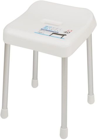立ち座りしやすく、シャワー浴に最適な座面高さ40cmのバススツール 浴室に合わせて使うバススツール。 サイズ(約):幅315×奥行300×高さ430mm 重量(約):850g 材質:座面・中キャップ/ポリプロピレン、 外キャップ/エラストマー、 パイプ/アルミニウム(アルマイト加工) 原産国:日本 |