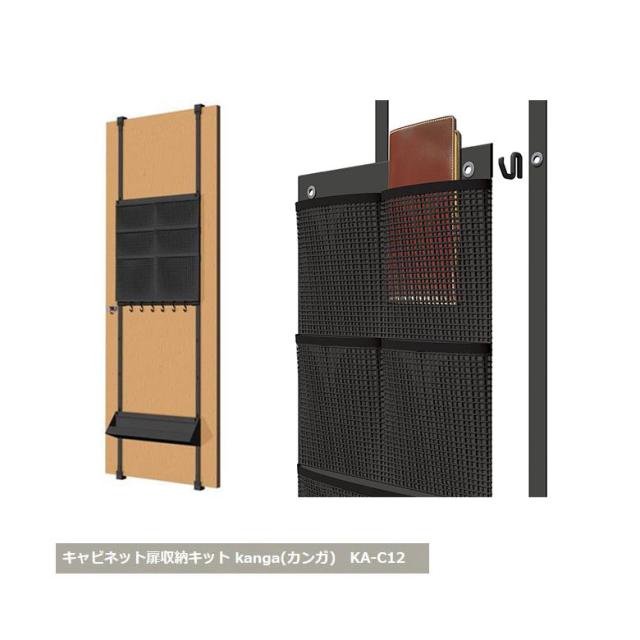 積水樹脂 KANGA キャビネット扉収納キット KA-C12 カンガ 棚 収納 背面 ドア収納 サニタリー キッチン メッシュポケット 取り付け簡単 開き戸 フック 中身が見える 整理 片付け たな 便利 ポケット2枚 セット