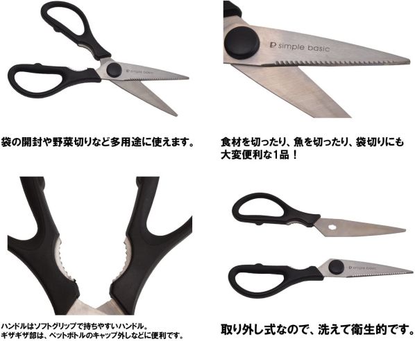 商品説明 | 色 ブラック 材質 ステンレス鋼 ブランド パール金属(PEARL METAL) 商品寸法 (長さx幅x高さ)27 x 9.4 x 1 cm 商品重量 0.22 ポンド 刃先が取り外して丸洗いできる 袋の開封や肉や魚、野菜などの食材切りに 食器洗い乾燥機使用可能 パール金属 シンプルベーシック キッチン バサミ シンプルベーシック キッチン バサミ C-8901 袋の開封や野菜切りなど多用途に使える。 ハンドルはソフトグリップで持ちやすいハンドル。 ギザギザ部は、ペットボトルのキャップ外しなどに便利。 食材を切ったり、魚を切ったり、袋切りにも大変便利な1品。 取り外し式なので、洗えて衛生的。 |