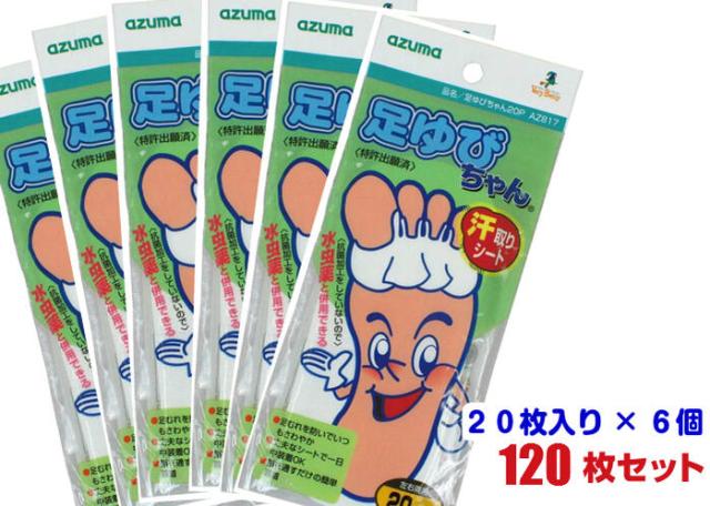 足ゆびちゃん 汗取りシート 20枚入×6 120枚セット お買い得! 汗 消臭 ムレ 臭い 防止 指 足指 シート 使い捨て 水虫 対策 便利グッズ 衛生 携帯 持ち運び ドライブ 旅行 お出かけ まとめ買い