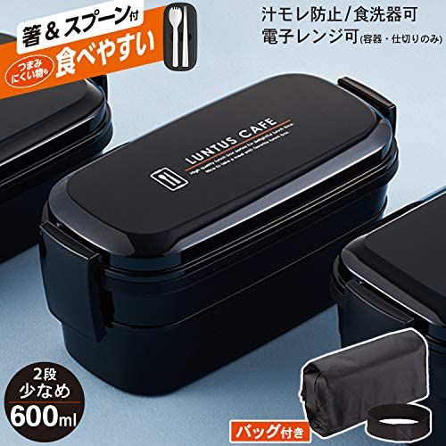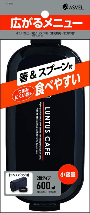 弁当箱 2段 ランタスCS CS-T600 ブラック 3521 スプーン・お箸・バッグ付 600ml アスベル お弁当箱 ランチボックス 少量用 少な目 小食