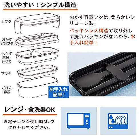 商品説明 | 箸とスプーンの使い分けで、様々なメニューが食べやすい 丼物やオムライスなどもOK。箸とスプーンはカタカタ鳴らずに収納可能 おかず容器フタはシリコーン製 パッキンレスでお手入れ簡単・食洗機対応可能 |