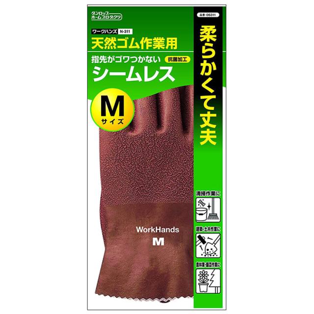 | 商品名 | ワークハンズ N-311 天然ゴム作業用 シームレス Mサイズ ブラウン |