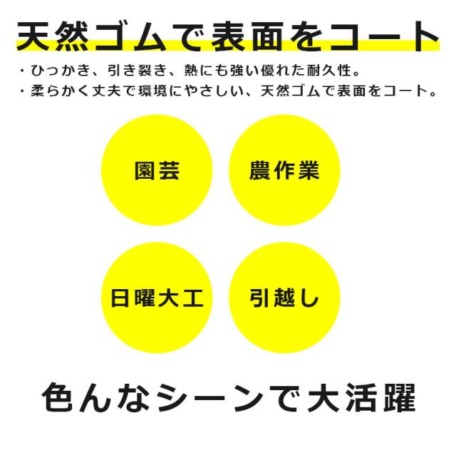 商品説明 | ●ひっかき、引き裂き、熱にも強い優れた耐久性。 ●柔らかく丈夫で環境にやさしい、天然ゴムで表面をコート。 ※感電の恐れがありますので、電気作業には使用しないでください。 ※熱いものには触れないでください。 |