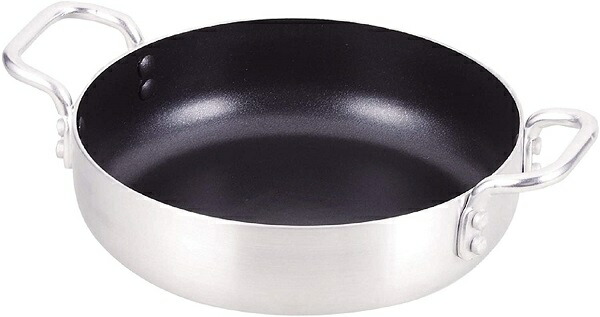 | 材質 | 表面加工:内面/ふっ素樹脂塗膜加工 材料の種類:本体/アルミニウム合金、 はり底/ステンレス鋼(底の厚さ2.3mm) |
