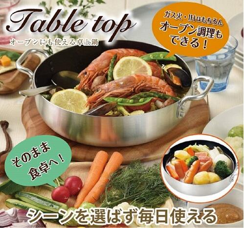 商品説明 | シーンを選ばず毎日使えます。調理の後はそのまま食卓 へ! ガス火はもちろん、IHやオーブンにも使用できます ガス火・IHはもちろん、オーブン調理もできる! ガス火・IH・オーブン調理ができる卓上鍋。 卓上コンロでも使えてとても便利です。鍋の内面はダイヤモンドコート加工でこびりつきにくく傷つきにくいつくりです。 |