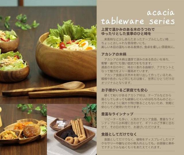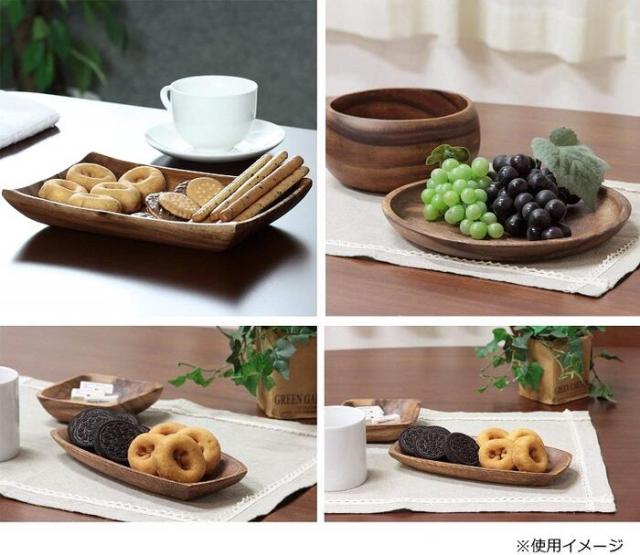 商品説明 | 風合い豊かな天然木を使用しており、あたたかみが感じられます。 食事を乗せるだけでなくお菓子や小物をいれたり、アイディア次第で使い方は色々です。 手作りのためサイズや模様、色合いが多少異なる場合がございます。 落としても破損しにくい、丈夫なアカシア素材です。 |