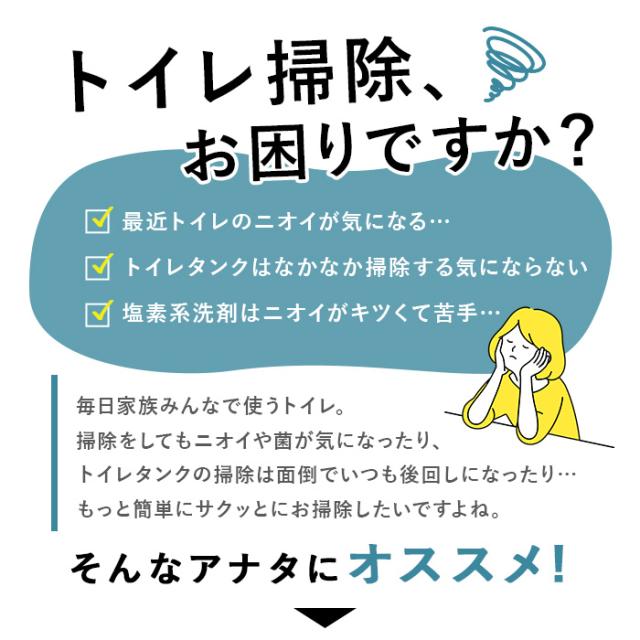 | 注意点 | ※用途以外に使用しないでください。 ※荒れ性の方は炊事用手袋を使用してください。 ※他の洗浄剤と混ぜて使用しないでください。 ※子供の手の届くところに置かないでください。 ※直射日光のあたる場所、高温多湿になる場所には置かないでください。 ※50度以上のお湯で使用しないでください。 ※衣類などに付着すると脱色することがあります。 ※使用の際は粉末や溶かした液が目や体にかからないように注意してください。 ※トイレタンクから直接給水するタイプのおしり洗浄機能付きタンクには使用できません。 [応急処置] ※粉や溶かした液が目に入った場合はすぐに流水で洗い流してください。 ※万一飲み込んだ場合は、吐かせずに口をよく洗い、水や牛乳を飲ませてください。 ※皮膚についた場合は流水でよく洗い流してください。 ※異常が残る場合は、処置をしたうえ、本品を持参して医師に相談してください。 ※カメラやモニターの性質により、画像と実物の色の違いがある場合がございますのでご理解願います。 |