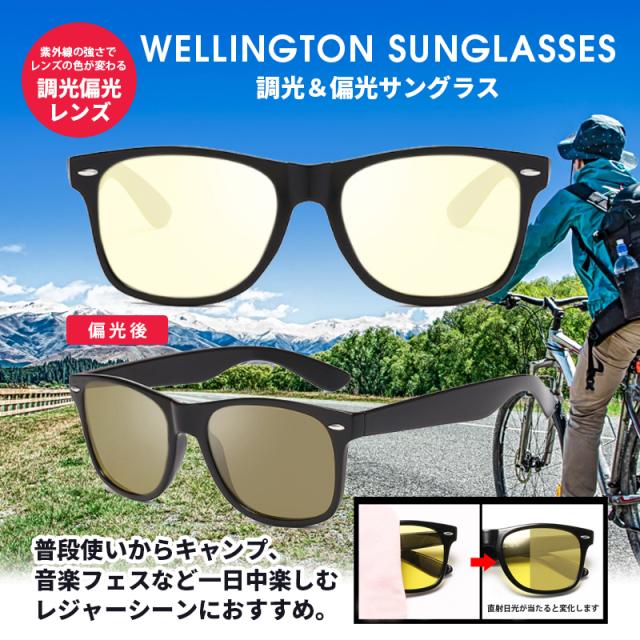 サングラス メンズ レディース ウェリントン イエロー 偏光レンズ 変色 紫外線でレンズカラーが変化 マラソン ランニング ゴルフ 釣り サイクリング キャンプ アウトドア スポーツ イエロー めがね おしゃれ バイク 車 運転 UV