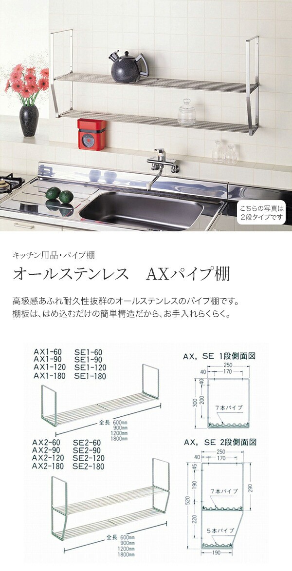 池永鉄工 LivLiv オールステンレス AXパイプ棚 AX1-60 1段タイプ