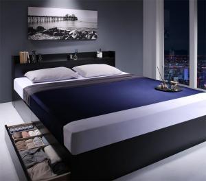 ダブルベッド 2人 マットレス付き チェストベッド ミドル ベッド下収納 引き出し付き 大容量 宮付き ヘッドボード 枕元 棚 ラック 携帯置き ティッシュ置き メガネ置き リモコン 頭上 収納 コンセント ゲーム ケーブル スマホ 充電 電気 デザイナーズ ホテル モダン 高級 メンズ