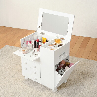 ドレッサー 1面 テーブル 化粧台 コスメ 鏡台 机 収納 姿見 コンパクト ミニ 北欧 アンティーク かわいい 姫系 ジュエリー アクセサリー 大容量 おしゃれ 薄型 薄い ロータイプ 低い ワゴン 約 幅45×奥行27×高さ52cm