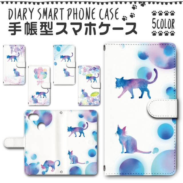 スマホケース スマホ ケース スマホカバー スマホ カバー 手帳型 GRATINA KYV48 対応 送料無料 猫 ネコ 水彩 ブルー / dc-442