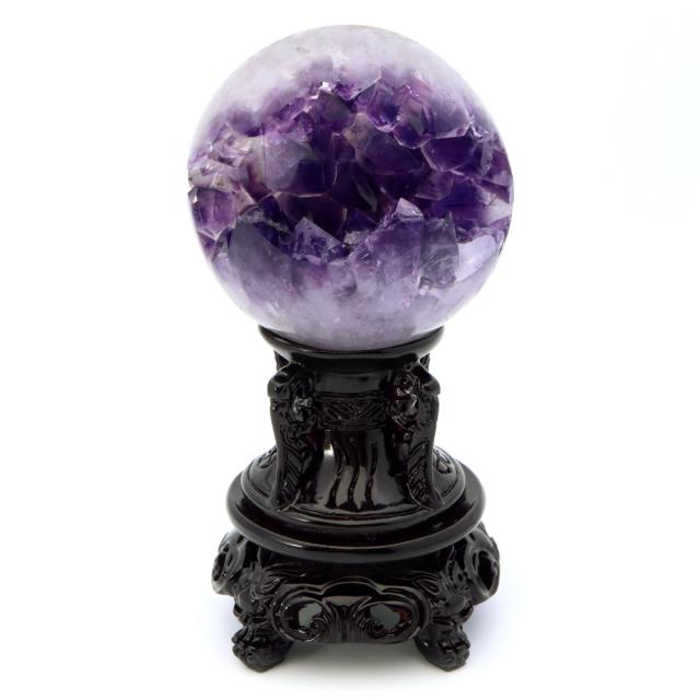 アメジスト 笑口 丸玉 直径74mm 511g 台座付き ジオード 1点もの 天然石 紫水晶 パワーストーン ウルグアイ産 母の日 プレゼント