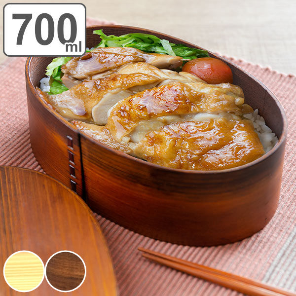 お弁当箱 曲げわっぱ 700ml 1段 小判型 ( 弁当箱 ランチボックス 木製 漆塗り ウレタン塗装 わっぱ弁当 弁当 お弁当 一段 天然木 ゴムバンド付き 仕切り付き かわいい おしゃれ )