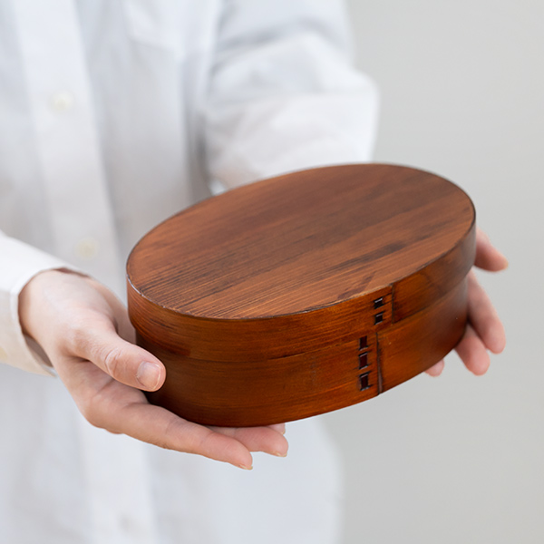 天然木の効果で冷めてもおいしい小判型曲げわっぱ