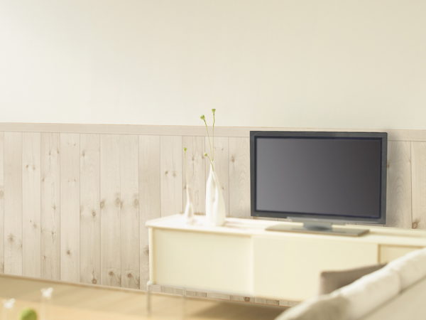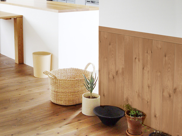 高さ90cmと床から腰のあたりくらいまでの腰壁タイプでなので、壁紙をすべて張り替えるより手軽に出来ます。インテリアのアクセントとしてはもちろんのこと、お部屋を広く、明るく魅せてくれます。また、汚れたり傷がつきやすい床から腰の高さまでの壁を保護したり清潔に保ってくれます。