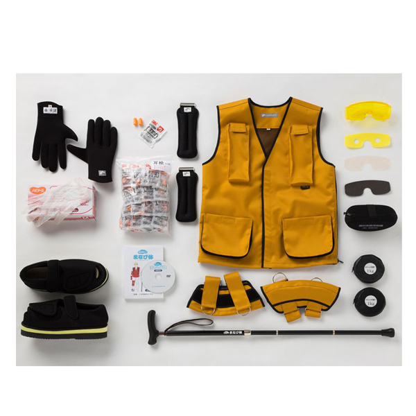 高齢者の不自由さを自ら体験、体感できる疑似体験セット。