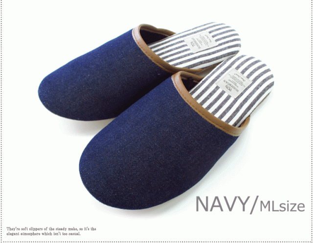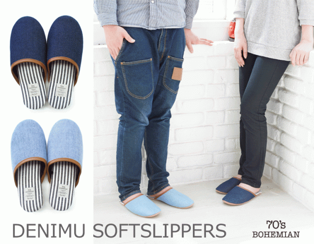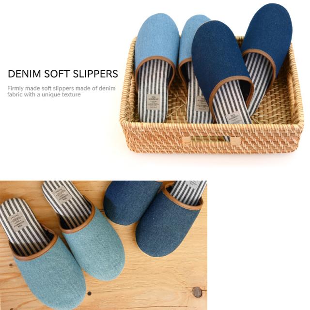 独特な風合いのあるデニム生地をしっかりとした造りのソフトスリッパに。