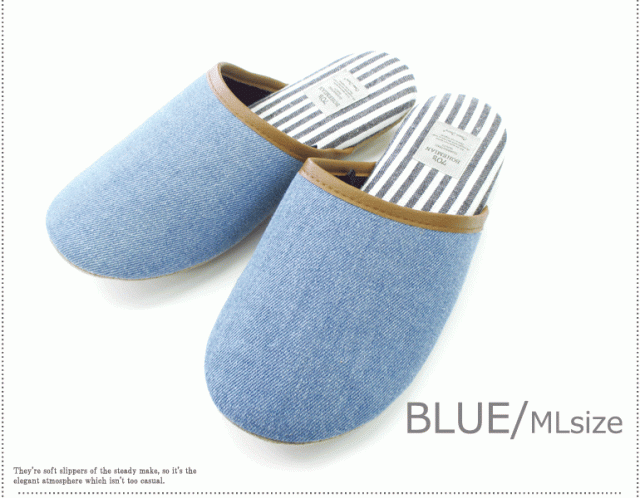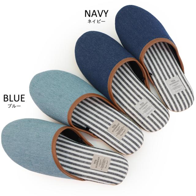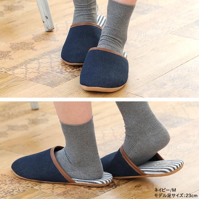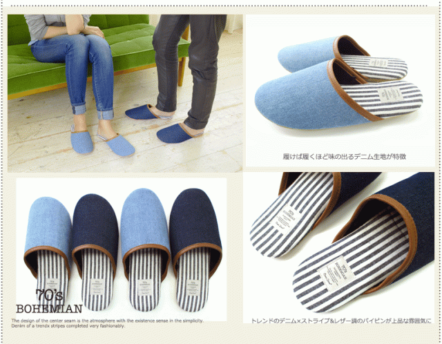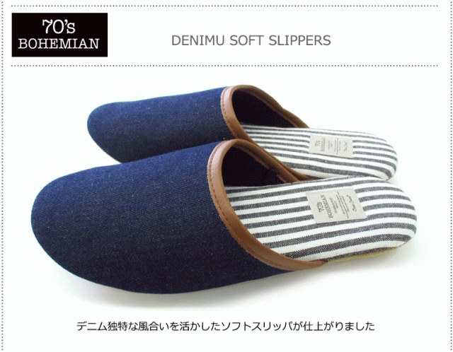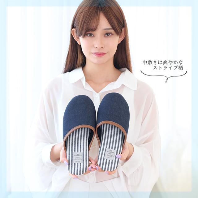 スリッパ おしゃれ デニム ストライプ アメカジ ゆったりサイズ 静音 メンズ レディース (ok-ds7901) 来客用 ルームシューズ ルームスリッパ 部屋履き 会社 職場 在宅勤務 お洒落 前とじ デニムソフトスリッパ agesugi_snk