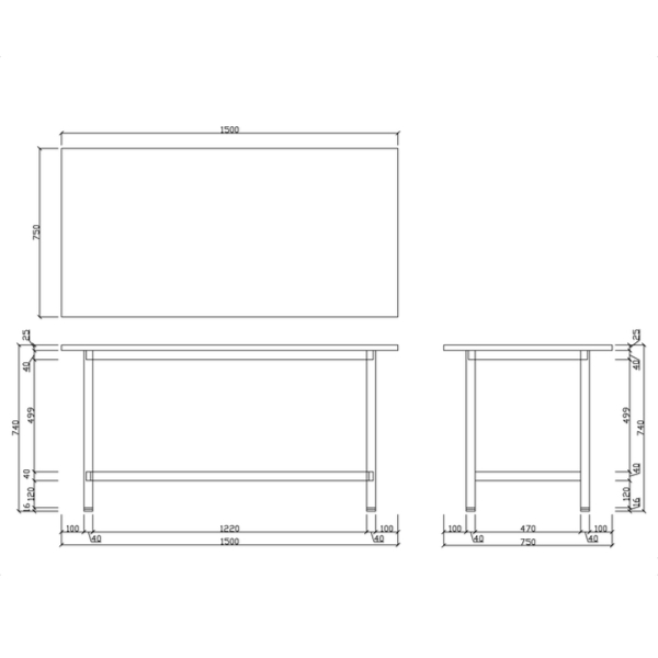 安定感のある作業台テーブル(幅150cm)