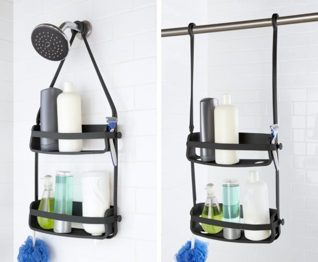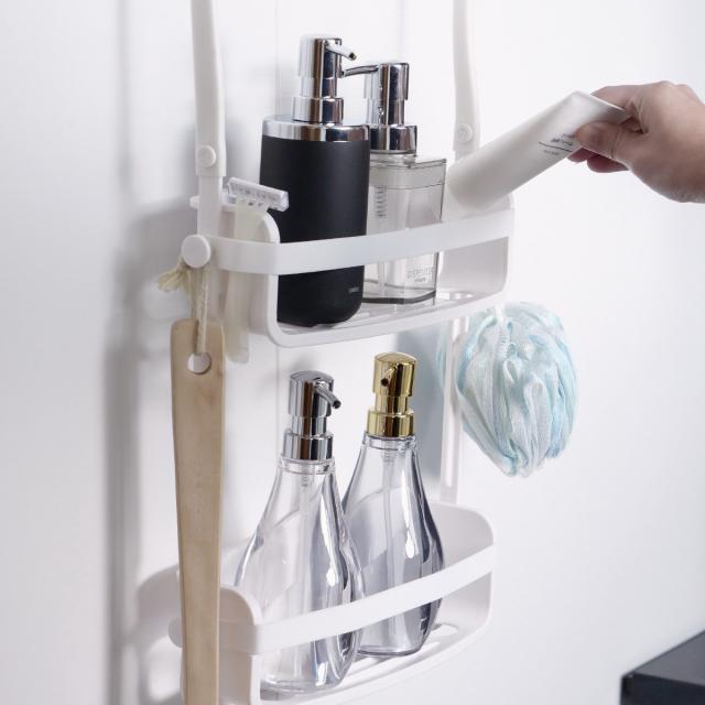 シャワーフックやタオルバーに掛けて、バスグッズをまとめて収納できるシャワーキャディーです。たっぷり収納できるのに場所を取らないミニマムなデザインは、コンパクトなバスルームでもすっきり溶け込みます。