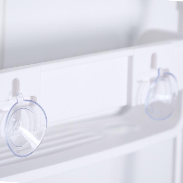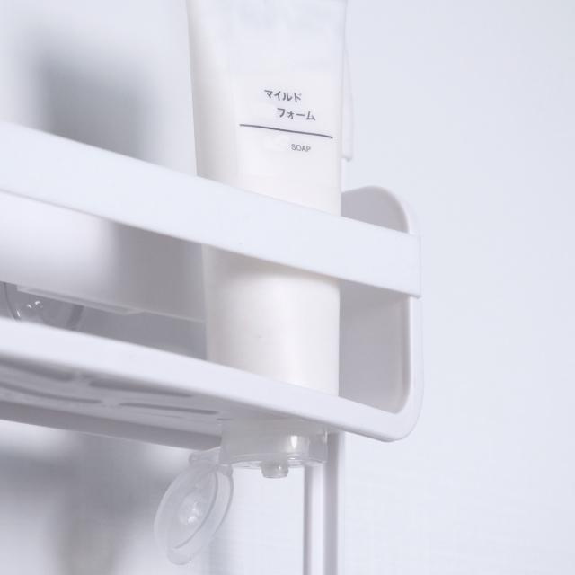 壁沿いに設置する際は棚部分の背面に吸盤が付いているため、壁面に固定できます。揺れ動かず安定感のある使い心地です。