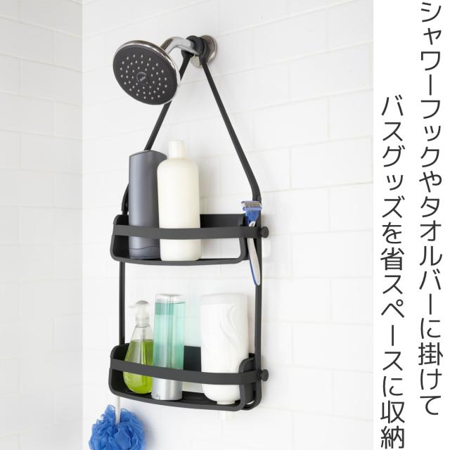 収納 お風呂 吊り下げ umbra アンブラ フレックス シャワーキャディー シャワーラック ( バス収納 ラック シェルフ 吸盤 2段 浮かせる収納 ボトルスタンド 小物収納 小物 浴室 浴室収納 壁付け 穴 ジェル ロック フック 掛けられる )