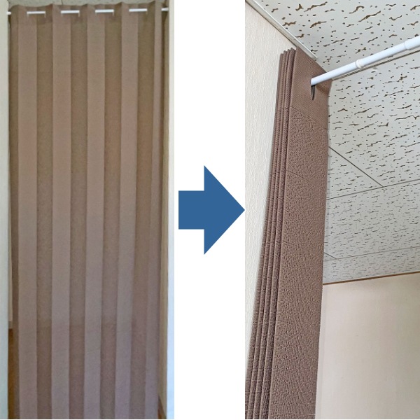丈は嬉しいロングの250cmですが、ラインに沿って約10cmごとにカットできるのでお好みの丈にアレンジすることも可能です。縦にカットすれば、暖簾として使用することもできて便利です。