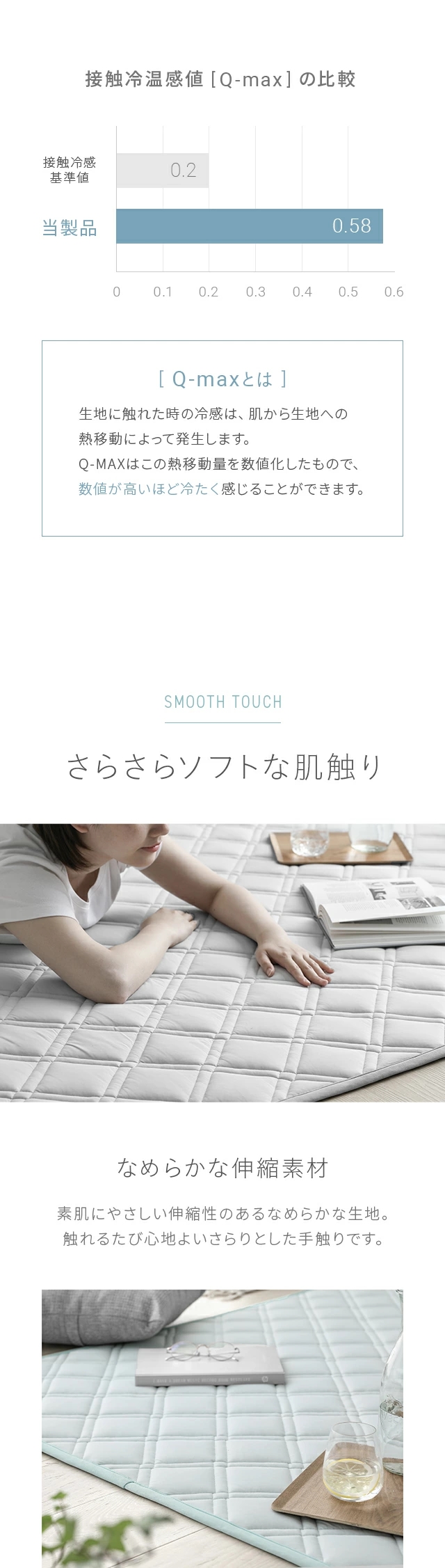 - ツルサラな触感が何とも気持ち良く、 これなら暑い時期を快適に過ごせそうです。 程好い厚みがありながら、軽くて片付けやすいのも◎です。 ただ、残念なのは『洗濯不可』な事。 (他サイズで)勘違いされている方もいるようですし、 理由を含め、もっと分かりやすく記載するべきですね。