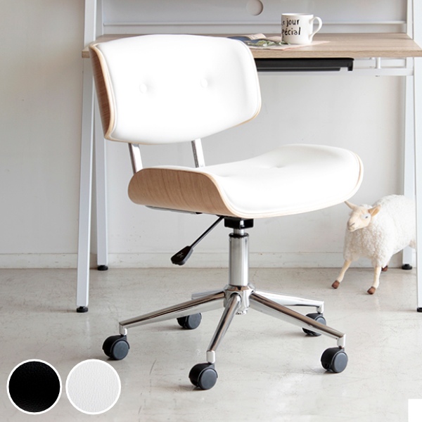丸みを帯びた曲木合板と合成皮革の組み合わせがモダンレトロなワークチェアです。オフィスではもちろん、在宅ワーク用チェアとしてご自宅でもご使用していただけます。