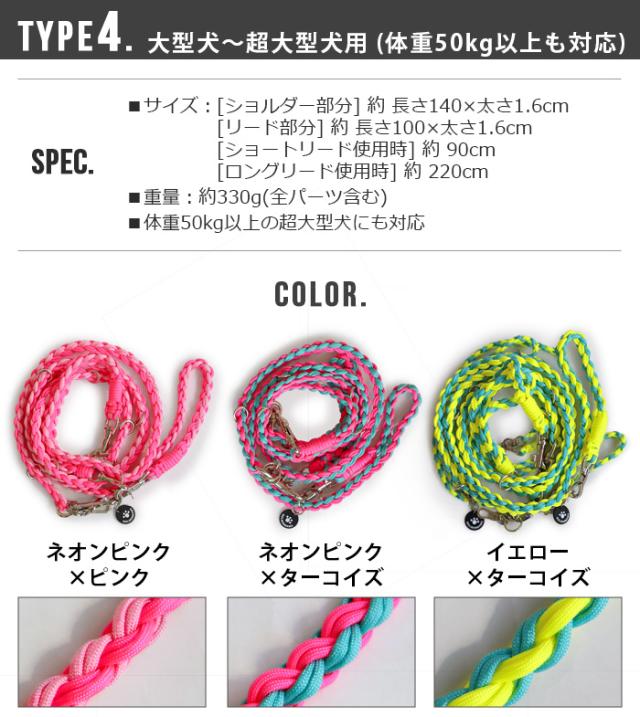 | 大型犬〜超大型犬用 (体重50kg以上も対応) 肩に斜め掛けできる3wayハンズフリーリード 汚れてもゴシゴシ洗える強い耐久性 リードがねじれない回転ナスカン付き |