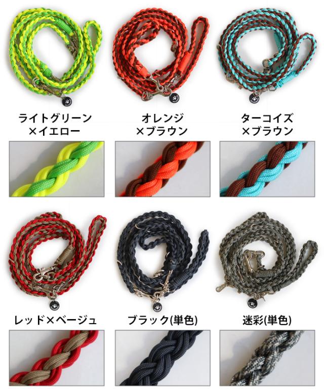 素材はテント・タープなどアウトドアシーンで使用されるアメリカ製の「パラコード」を使用。耐久性に優れ、水にぬれてもすぐ乾くので、汚れても水でゴシゴシ洗えます。すべて静岡県で一点一点手編みされた安心の日本製です。