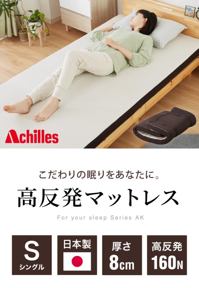 アキレス 日本製 高反発 マットレス シングル メッシュ ニット生地 厚さ8cm シングルマットレス ウレタン 国産 ノンコイル(代引不可)【送
