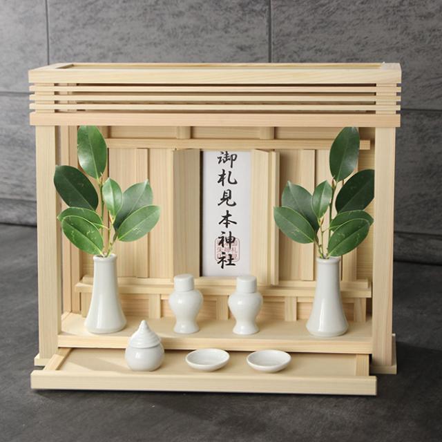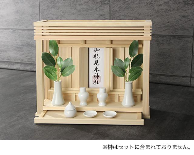 神棚 箱宮三社 神楽 神具付きセット 4993896900928(神棚 モダン神棚 簡易神棚 コンパクト神棚 棚板 神棚板 お札立て おふだ立て 神札受け 神札 神具 壁掛け 薄型 おしゃれ オシャレ インテリア 木材 木製 国産 日本製) 即納