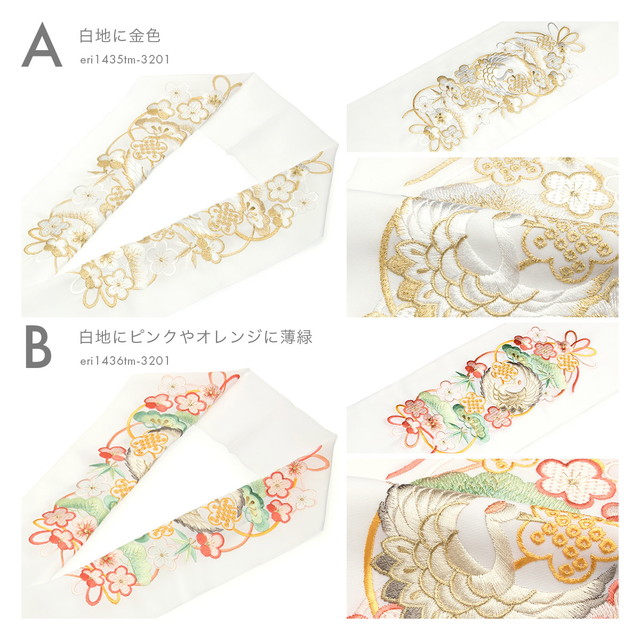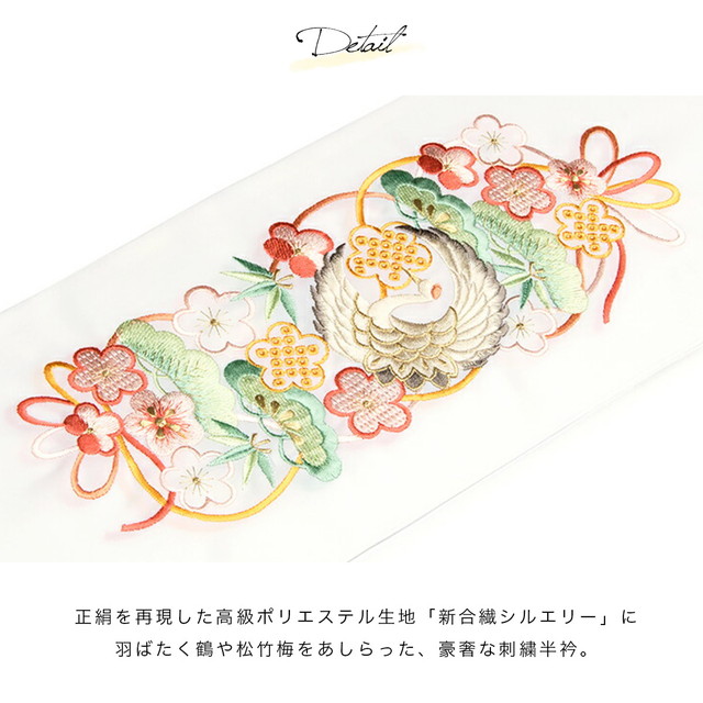 半衿 半襟 刺繍 振袖 成人式 白 カラフル 金色 鶴 鳥 松竹梅 花 新合繊 シルエリー 留袖 婚礼 白無垢 和装小物 女性 レディース 日本製 送料無料