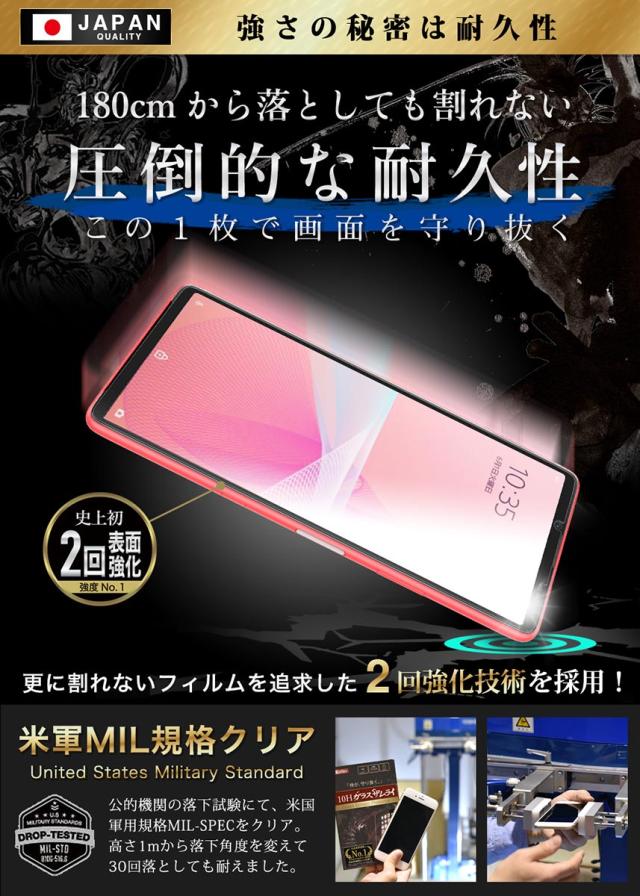 Xperia 10 III / 10 III Lite SO-52B SOG04 ガラスフィルム 全面保護フィルム ブルーライト32%カット 目に優しい ブルーライトカット 10H ガラスザムライ フィルム 液晶保護フィルム OVER`s オーバーズ 黒縁 TP01