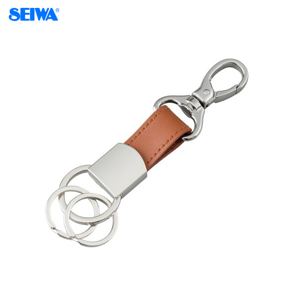 セイワ EGキーホルダープラス ブラウン キーリング カラビナフック 鍵 車のキー等 取り外し可能リング2個 ボンデッドレザー WA77