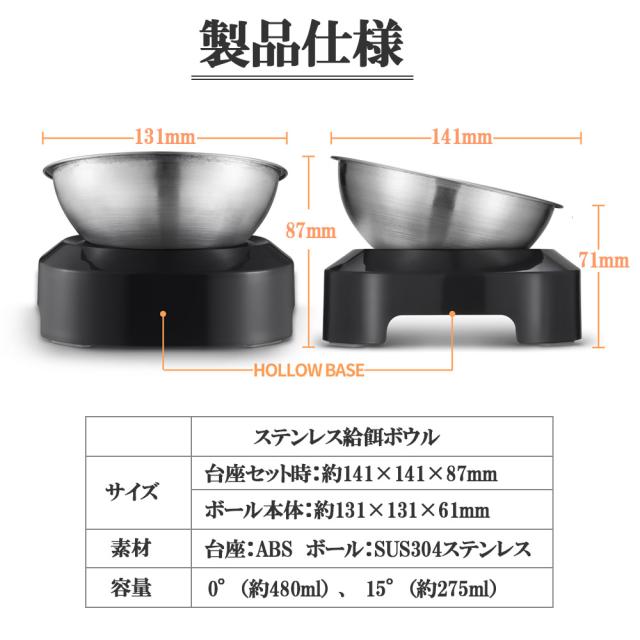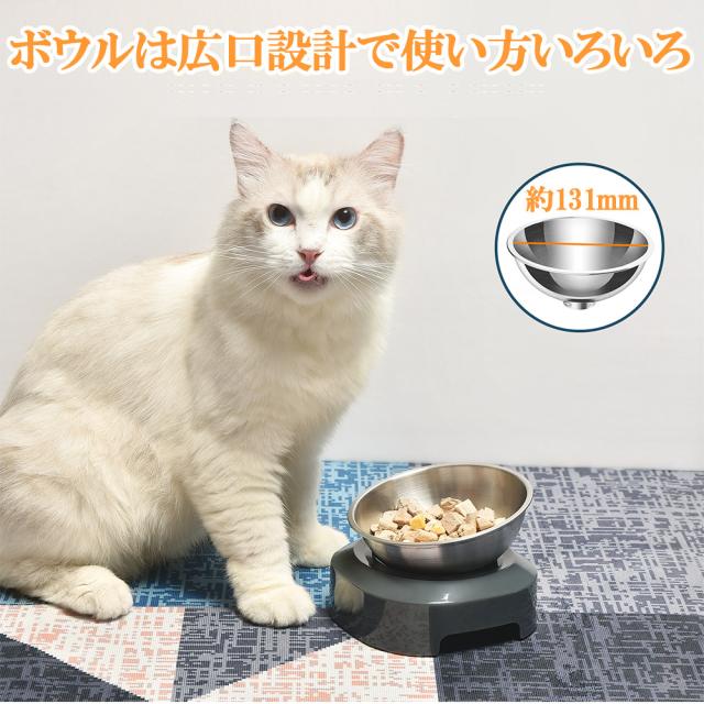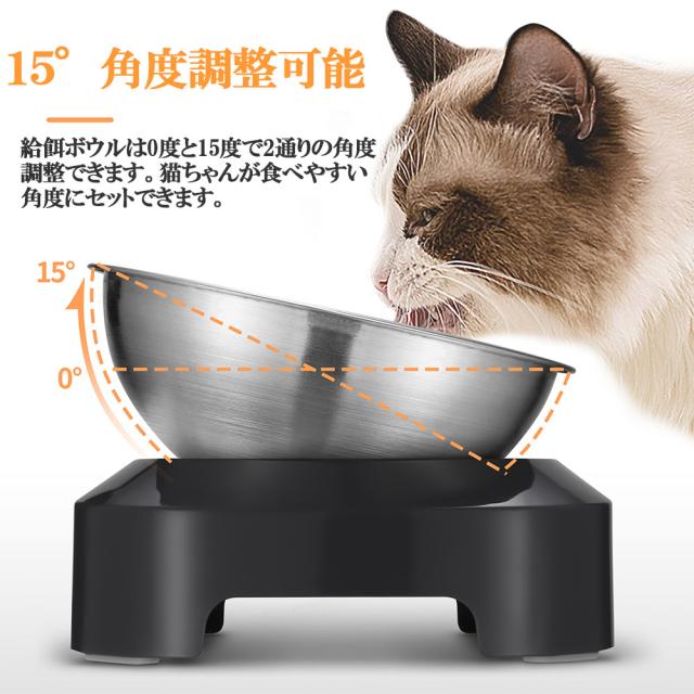 ■角度調整可能 フードボウル ステンレス 15度 給餌機 給餌器 エサボウル ボール エサ皿 フード皿 お皿 お椀 おわん 猫 餌やり ペット用品