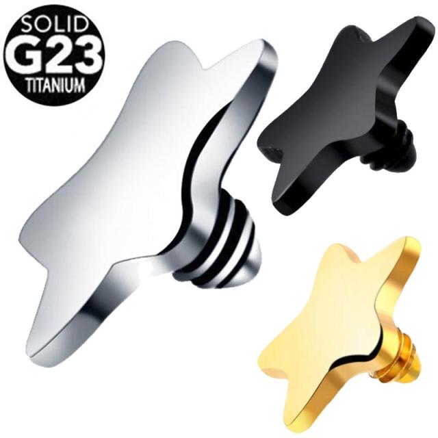 [14G用 内ネジ用 ボディピアス キャッチ] チタン製スター型 インターナル ネジパーツ 14ゲージ チタングレード23 G23 逆ネジ バーベル用 ラブレット用 ダーマルアンカー サーフェイス ボディーピアス メンズ レディース ニッケルフリー ブラック ゴールド シルバー